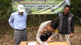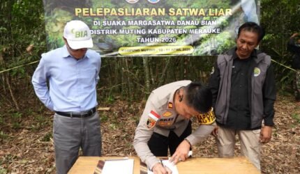 Polsek Polsek Muting Bersinergi dengan KSDA Lepasliarkan Satwa Dilindungi di Rawa Bian