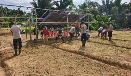 Polsek Polsek Bonggo Dorong Ketahanan Pangan, Bersama Petani Tanam Kacang Tanah di Kampung Rotea