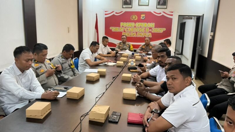 Papua – Polda Papua melaksanakan kegiatan Analisa dan Evaluasi (Anev) mingguan Operasi Sikat Cartenz II – 2025 yang berlangsung di Aula Ditreskrimum Polda Papua, Rabu (08/10).
