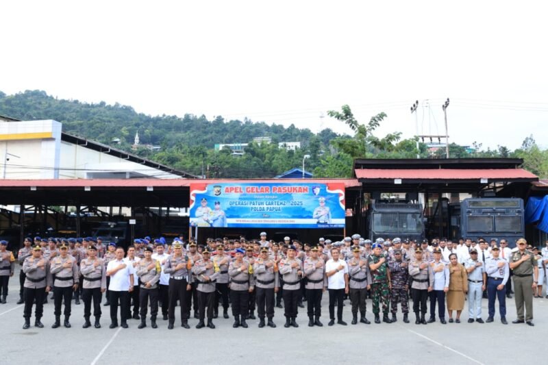 Papua – Polda Papua menggelar Apel Gelar Pasukan Operasi Patuh Cartenz 2025 di Lapangan Apel Polda Papua, Jl. Dr. Sam Ratulangi No. 08, Distrik Jayapura Utara, Kota Jayapura. Apel ini dipimpin langsung oleh Kapolda Papua, Irjen Pol. Patrige R. Renwarin, S.H., M.Si., sebagai bentuk kesiapan seluruh personel dan pemangku kepentingan dalam mendukung pelaksanaan operasi yang akan berlangsung selama 14 hari, mulai 14 hingga 27 Juli 2025. Operasi ini bertujuan untuk menciptakan keamanan, keselamatan, ketertiban, dan kelancaran lalu lintas (Kamseltibcarlantas) di wilayah hukum Polda Papua.