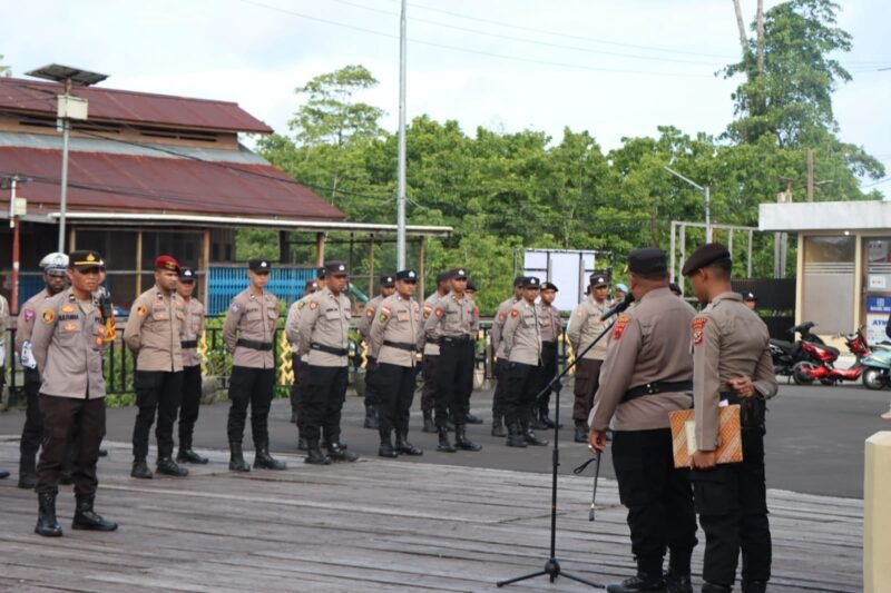Papua – Kapolres Asmat AKBP Wahyu Basuki, S.I.K., Pimpin Apel Perdana Sebagai Kapolres Asmat mengantikan AKBP Samuel Dominggus Tatiratu, S.I.K., yang mendapatkan jabatan baru sebagai Kapolres Nabire.