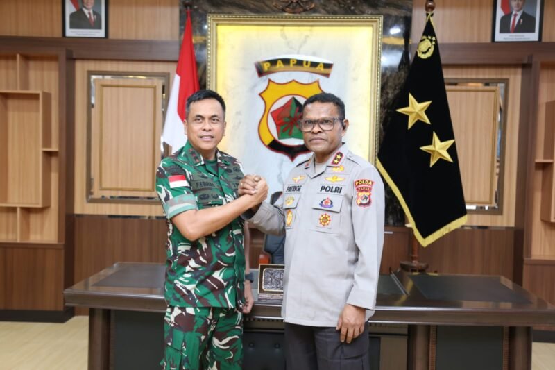 Papua – Sinergitas antara TNI dan Polri di wilayah Papua terus diperkuat melalui berbagai forum koordinasi strategis. Hal tersebut tercermin dalam kegiatan audiensi antara Kapolda Papua Irjen Pol. Patrige R. Renwarin S.I.K., M.Si., dengan Pangdam XVII/Cenderawasih Mayjen TNI Febriel Buyung Sikumbang S.H., M.M., yang berlangsung di Ruang Kerja Kapolda Papua, Mapolda Baru Koya Koso, Rabu (22/4/26).