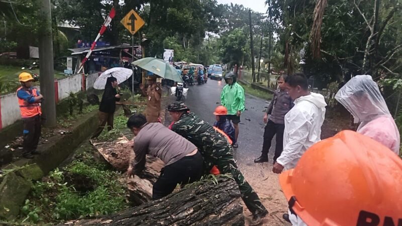 Peristiwa tersebut terjadi akibat hujan deras disertai angin kencang yang melanda kawasan tersebut. Dua pohon berukuran besar tumbang dan melintang di jalan, sehingga menghambat arus lalu lintas serta mengancam keselamatan pengguna jalan.