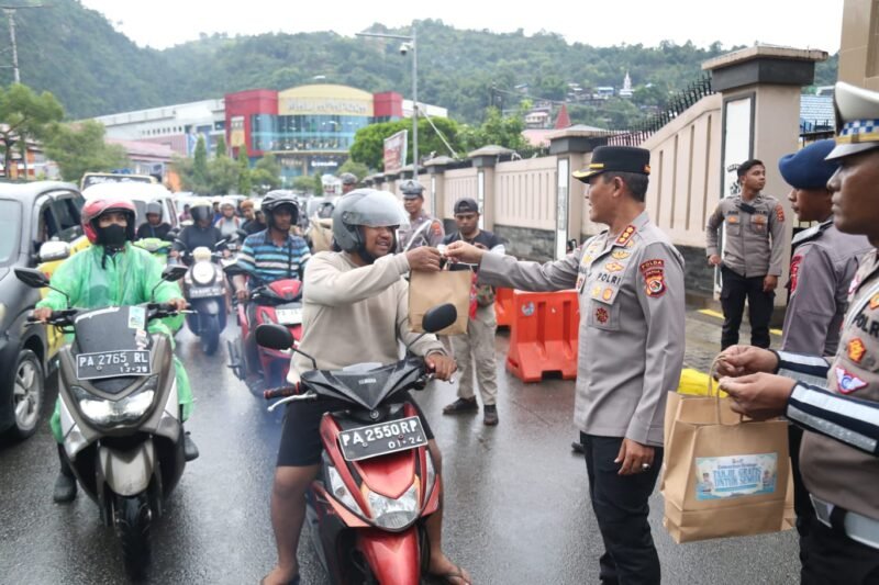 Sebanyak 250 paket takjil gratis dibagikan kepada pengendara roda dua maupun roda empat yang melintas di depan Mako Polda Papua Lama. Selain sebagai bentuk kepedulian sosial, kegiatan ini juga bertujuan untuk mempererat hubungan Polri dengan masyarakat serta meningkatkan kesadaran tertib berlalu lintas menjelang waktu berbuka puasa.
