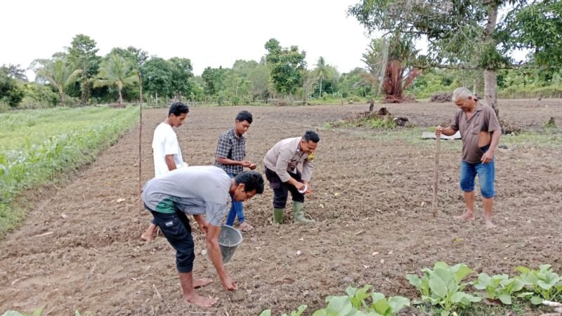 Teluk Bintuni, Papua Barat – Dalam rangka mendukung program pemerintah di bidang ketahanan pangan, Bhabinkamtibmas Kampung Vascodamnem, Distrik Meyado, Brigpol Yudhi K. Sembiring bersama kelompok tani Tunas Harapan melaksanakan kegiatan penanaman jagung pada Minggu (24/8/2025).