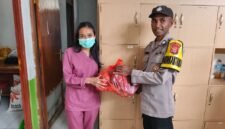 Bhabinkamtibmas Polres Tolikara Dampingi IBI Cabang Tolikara Salurkan Bantuan Sembako untuk Bidan Korban Kebakaran