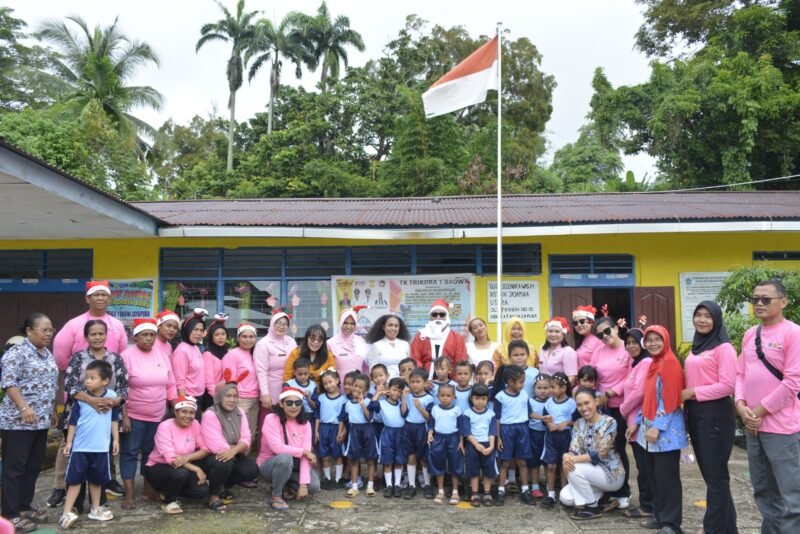 Papua – Dalam rangka menyambut Natal 2025 dan Tahun Baru 2026, Bhayangkari bersama Satuan Pelayanan Pemenuhan Gizi (SPPG) Polda Papua melaksanakan kegiatan berbagi Makanan Bergizi (MBG) dan bingkisan Natal bagi anak-anak di sejumlah sekolah di Kota Jayapura. Suasana sukacita semakin terasa dengan kehadiran Santa Claus yang ikut serta menyapa dan menghibur para siswa.