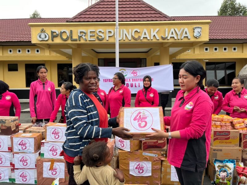 Bantuan yang berasal dari Ketua Bhayangkari Daerah Papua Tengah Ny. Riris Alfred Papare yang disalurkan kepada para pengungsi yang berada di 2 lokasi yakni di Aula Mapolres Puncak Jaya dan Aula Gereja GIDI Jemaat Emaus Mulia.
