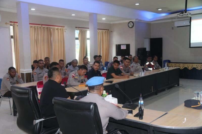 Papua – Tim dari Subbid Wabprof Bid Propam Polda Papua datangi Polresta Jayapura Kota pagi ini dan menggelar giat Pembinaan Etika Profesi Polri dan Asistensi Pelanggaran Kode Etik Profesi bertempat di Aula Mapolresta, Kamis (24/4).