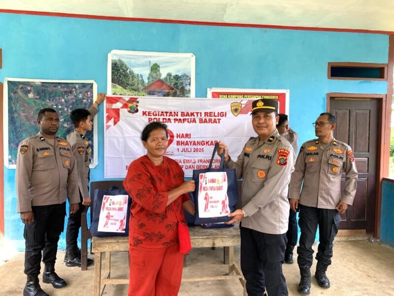 Manokwari – Dalam rangka memperingati Hari Bhayangkara ke-79 Tahun 2025, Biro Sumber Daya Manusia (SDM) Polda Papua Barat menggelar kegiatan Bakti Religi, dengan Tema Menuju Indonesia Emas, Transformasi Ekonomi yang Inklusif dan Berkelanjutan, kegiatan berlangsung di Kampung Persiapan Cunggrek, Kelurahan Katebu, Distrik Manokwari Selatan, Kabupaten Manokwari, Provinsi Papua Barat (26/6/25)