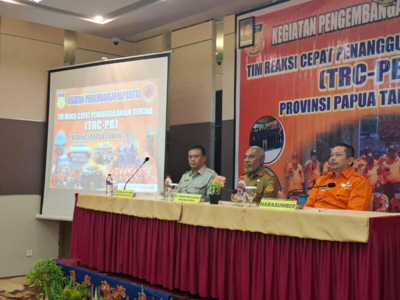Papua – Guna memperkuat kesiapsiagaan dan respons cepat terhadap bencana di wilayah Papua, Badan Penanggulangan Bencana Daerah (BPBD) Provinsi Papua menggelar kegiatan Penguatan Kapasitas Tim Reaksi Cepat (TRC) Penanggulangan Bencana Tahun 2025. Kegiatan ini berlangsung di Hotel MaxOne, Jayapura, pada Selasa (15/7/2025).