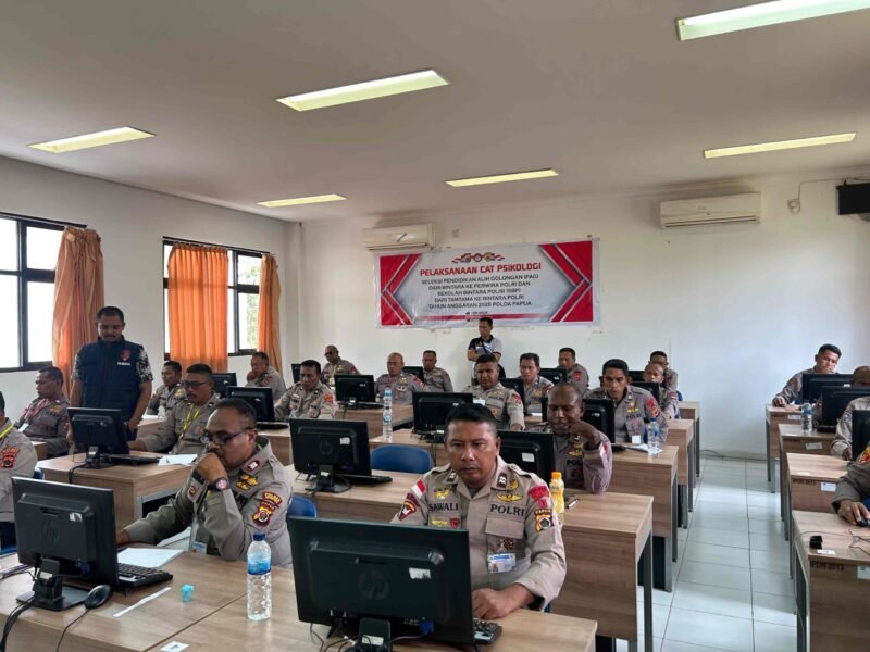 Papua – Pelaksanaan Computer Assisted Test (CAT) Psikologi dalam rangka Seleksi Pendidikan Alih Golongan (PAG) dari Bintara ke Perwira Polri Tahun Anggaran 2025 di wilayah Polda Papua berlangsung dengan tertib dan lancar, Selasa (7/10/2025).