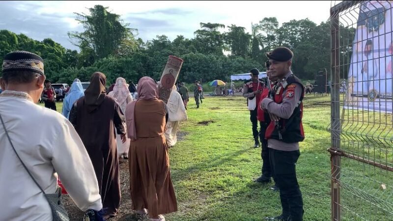 Sarmi – Dalam rangka menjaga keamanan dan kelancaran pelaksanaan Sholat Idul Fitri, pada Minggu pagi (21/3/26), personel Polres Sarmi melaksanakan pengamanan di sejumlah titik, salah satunya di kawasan Bandara Mararena.