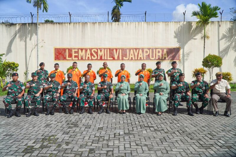 Jayapura – Sebagai bentuk kepedulian dan perhatian kepada anggota yang tengah menjalani pembinaan, Danrem 172/PWY Brigjen TNI Dedi Hardono, S.I.P., bersama Ketua Persit KCK Koorcab Rem 172/PWY Ny. Seri Dedi Hardono, mengunjungi Lembaga Pemasyarakatan Militer (Lemasmil) VI Jayapura dan Instalasi Tahanan Militer (Staltahmil) Waena, pada Selasa (31/12).