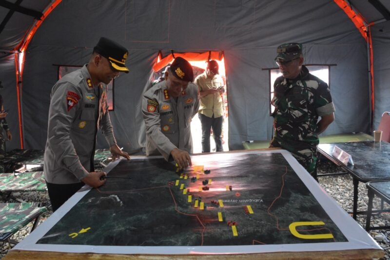 Papua – Direktur Samapta Polda Papua, Kombes Pol. Sondang R.D. Siagian, S.I.K. didampingi Bupati Kabupaten Jayawijaya, Atenius Murip, S.H., M.H melaksanakan pengecekan posko Tanggap Darurat bencana banjir dan longsor Kabupaten Jayawijaya di Kampung Umpakalo, Distrik Kurulu, Kabupaten Jayawijaya, Rabu (30/04/2025).