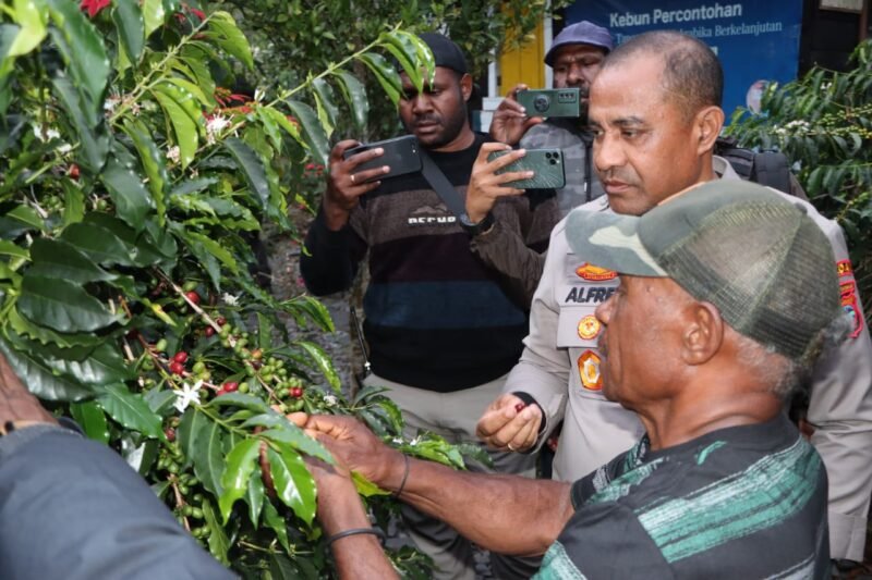 Papua – Sebagai wujud dukungan terhadap kemajuan dan perkembangan UMKM di Kab. Puncak Jaya, Kapolda Papua Tengah Brigjen Pol. Alfred Papare, S.I.K didampingi Forkopimda mengunjungi langsung perkebunan kopi milik Bapak Yotimus Wonda yang berada di Kampung Muliambut, Sabtu (15 Februari 2025).