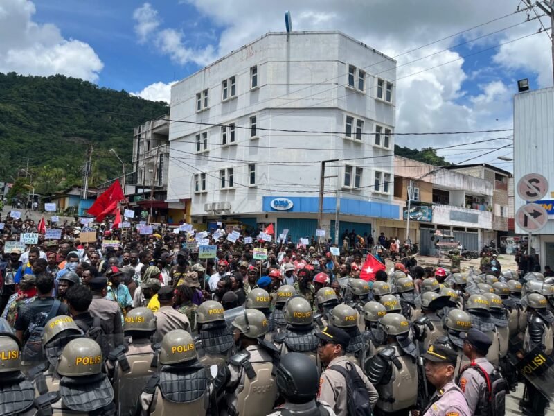 Papua – Direktorat Samapta Polda Papua di bawah pimpinan Kombes Pol. Sondang R. D. Siagian, S.I.K. turunkan empat pleton pasukan Dalmas guna melakukan pengamanan terhadap aksi unjuk rasa yang digelar oleh kelompok massa yang menolak Proyek Strategis Nasional (PSN) di Kota Jayapura, Rabu (24/09).