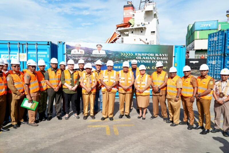 Papua – Papua kembali mengekspor kayu olahan ke Shanghai, China. Pelepasan resmi dilakukan Gubernur Papua, Komjen Pol (Purn) Mathius D. Fakhiri, S.I.K., M.H., bersama Dinas Perdagangan dan Perindustrian Provinsi Papua, Rabu (26/11/2025). Pada tahap kelima ini, 10 kontainer dengan volume 1.196,7814 m³ diberangkatkan dari Pelabuhan Jayapura. Dengan keberangkatan ini, total ekspor kayu olahan Papua sepanjang 2025 mencapai 43 kontainer atau 7.099,4190 m³.