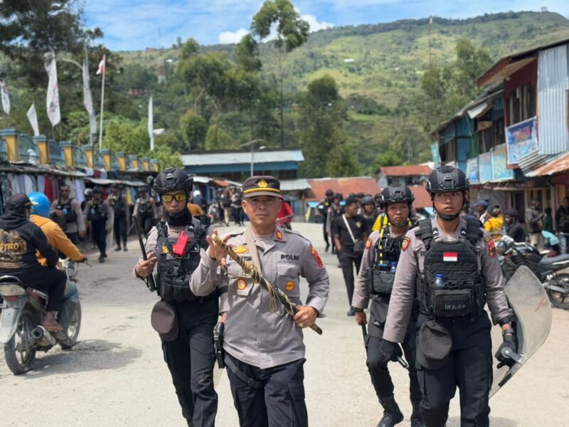 Papua – Mengantisipasi gangguan kamtibmas, Polres Tolikara laksanakan patroli dan razia alat tajam. Sabtu, (11/01/2025).