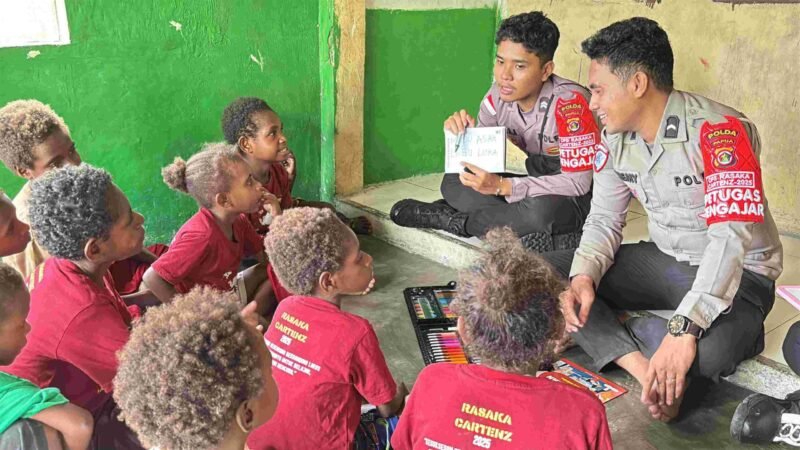 personel secara terjadwal memberikan pelajaran kepada anak-anak di Jalan Sosial Distrik Dekai Kabupaten Yahukimo, Selasa (3/6/25).