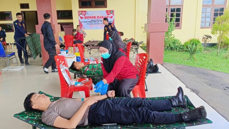 Papua – Dalam rangka menyambut Hari Bhayangkara ke-79, Polres Boven Digoel melaksanakan kegiatan donor darah sebagai bagian dari rangkaian Bhakti Kesehatan Polri. Kegiatan ini digelar di Ruang Lobi Polres Boven Digoel, dan dibuka secara resmi oleh Kapolres Boven Digoel yang diwakili oleh Kabag Ops AKP Hajarka.
