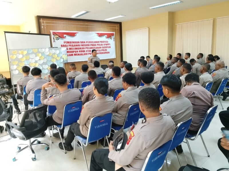Papua – Polda Papua melalui Bidang Profesi dan Pengamanan (Propam) melanjutkan pelaksanaan Pembinaan dan Pemulihan Profesi Polri bagi Pegawai Negeri Pada Polri (PNPP) yang melakukan pelanggaran disiplin maupun Kode Etik Profesi Polri. Kegiatan ini memasuki hari kedua dan berlangsung di Ruang Rapat Propam Polda Papua, Koya Koso, Selasa (12/08/25).
