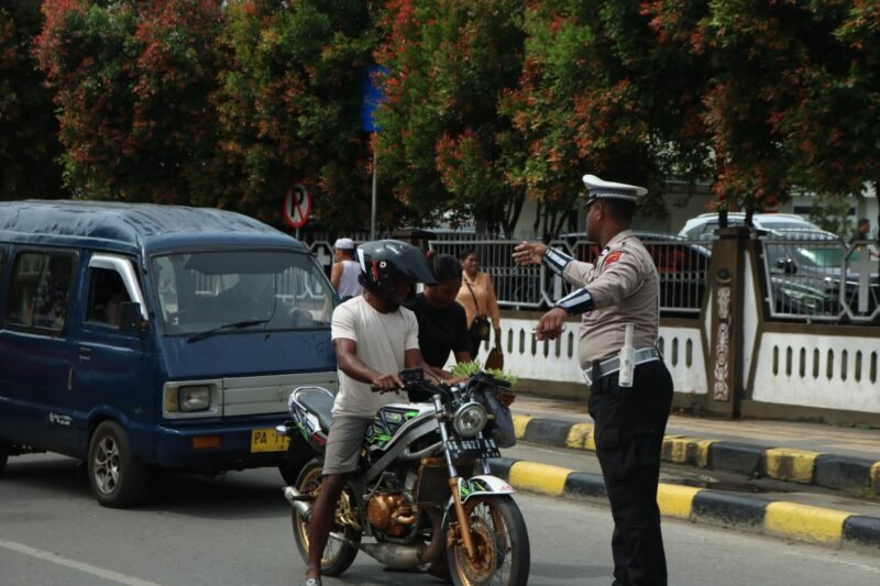 Operasi kemudian dilaksanakan dengan memantau arus lalu lintas di depan Mako Polda Papua, disertai penegakan hukum terhadap pengendara yang melanggar aturan lalu lintas.