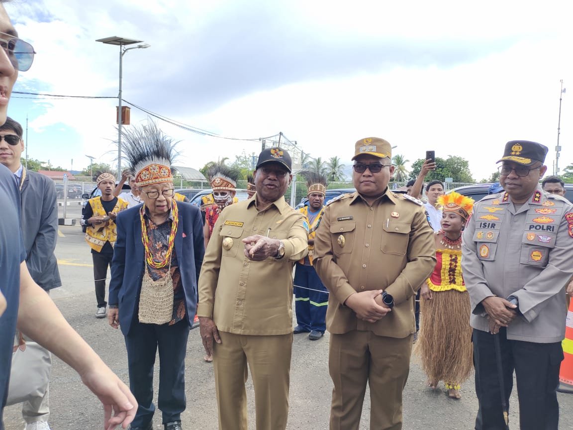 Manokwari – Kapolda Papua Barat Irjen Pol. Drs. Johnny Eddizon Isir, S.I.K, M.T.C.P bersama unsur Forum Komunikasi Pimpinan Daerah (Forkopimda) menghadiri kegiatan penyambutan Ketua Delegasi Tiongkok Ir. Prof. C.C. Chan, GBS, BSc, MSc, PhD, HonDSc di Bandara Rendani, Manokwari, Senin (6/10/2025).