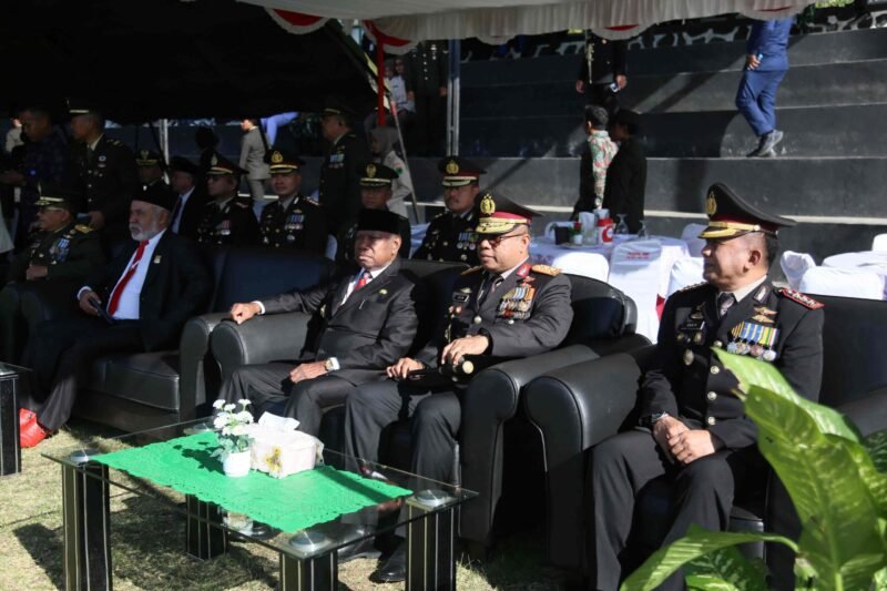 Manokwari – Kapolda Papua Barat Irjen Pol Johnny Eddizon Isir, S.I.K., M.T.C.P. menghadiri upacara peringatan Hari Ulang Tahun Tentara Nasional Indonesia (TNI) ke-80 yang digelar di Makodam XVIII/Kasuari, Manokwari, Minggu (5/10/2025).