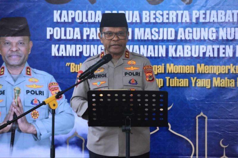 Papua – Kepala Kepolisian Daerah Papua, Irjen Pol Petrus Petrige Rudolf Renwarin, SH., M.Si. melaksanakan safari Ramadhan 1446 Hijriah tahun 2025 bertempat di Masjid Agung Nurul Huda Arso, Kabupaten Keerom, Rabu (05/03/2025).