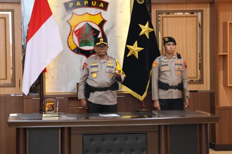 Papua – Kapolda Papua Irjen Pol. Patrige R. Renwarin, S.H., M.Si., memimpin pelaksanaan upacara serah terima jabatan Kapolres Yahukimo Polda Papua yang digelar di Ruangan Kerja Kapolda Papua, Polda Papua Koya Koso, Selasa (22/04/2025).