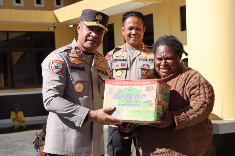 Puncakjaya – Pasca aksi saling serang antar kedua massa pendukung paslon Bupati dan Wakil Bupati Puncak Jaya beberapa hari lalu, Kepala Kepolisian Daerah Papua Brigjen Pol. Alfred Papare, S.I.K mengunjungi langsung para pengungsi yang ada serta memberikan bantuan sembako, Jum’at (07 Februari 2025).