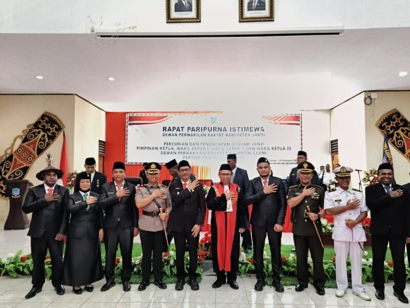 Papua – Kapolres Sarmi, Kompol Suparmin, S.IP., M.H., menghadiri Rapat Paripurna Pelantikan Dan Pengambilan Sumpah Jabatan Anggota, dan Pimpinan DPRK Kabupaten Sarmi masa jabatan 2024-2029, bertempat di Aula BPKAD Kabupaten Sarmi, Jum’at (14/02/2025).