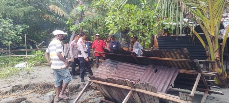 Sarmi – Kasat Polairud Polres Sarmi, Ipda Marthinus Allapadang, S.H., bersama KBO Sat Polairud Ipda Robisten Silaban, S.H.,MH, turun langsung meninjau kondisi warga Kampung Nisro yang berada di pesisir pantai Basecamp distrik Sarmi kabupaten sarmi, menyusul terjadinya gelombang tinggi yang mengakibatkan sejumlah rumah warga mengalami kerusakan. Selasa (17/3/26)