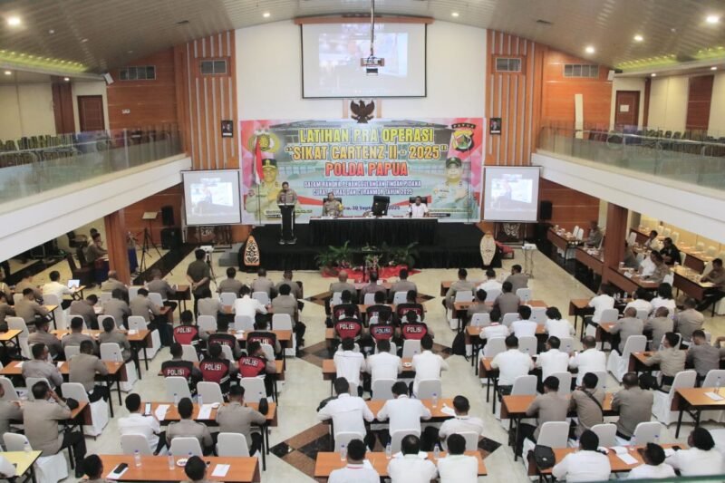 Papua – Kepolisian Daerah Papua melaksanakan kegiatan Latihan Pra Operasi (Latpraops) Sikat Cartenz II – 2025 yang dipusatkan di Grand Ballroom Horison Kotaraja, Selasa (30/09/2025).