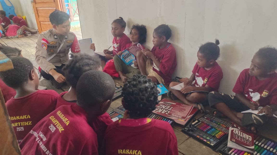 Kasubsatgas Si-IPAR, Ipda Maikel Matius Imburi, memimpin langsung jalannya kegiatan. Anak-anak terlihat antusias mengikuti pembelajaran yang dikemas secara menyenangkan melalui kegiatan menulis dan mewarnai.