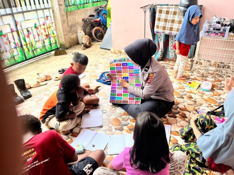 Papua – Subsatgas Si Ipar Operasi Rasaka Cartenz kembali melaksanakan kegiatan edukasi dengan mendatangi anak-anak putus sekolah di Rumah Belajar Graha Yotefa, Kota Jayapura, kehadiran personel kali ini dipimpin oleh petugas pengajar, Bripda Ifanny, yang memberikan ilmu pengetahuan sekaligus pembinaan sikap sosial.