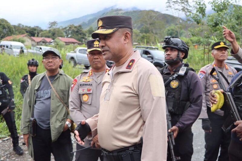 Papua – Pasca konflik antar pendukung paslon 01 dan 02 Bupati dan Wakil Bupati Puncak Jaya, Kapolda Papua Tengah Brigjen Pol. Alfred Papare, S.I.K bersama PJU Polda Papua Tengah didampingi Kapolres Puncak Jaya AKBP Kuswara, S.H., S.I.K., M.H melaksanakan kegiatan patroli dialogis dengan berjalan kaki diseputaran Kota Mulia, Sabtu (08 Februari 2025).
