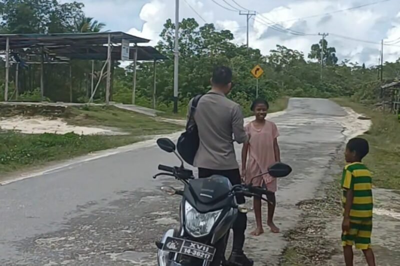 Sekitar pukul 13.00 WIT, Kapolsek menyempatkan diri menyambangi anak-anak yang sedang bermain di pekarangan rumah warga di Kampung Swaipak, Distrik Swandiwe, Kabupaten Biak Numfor.