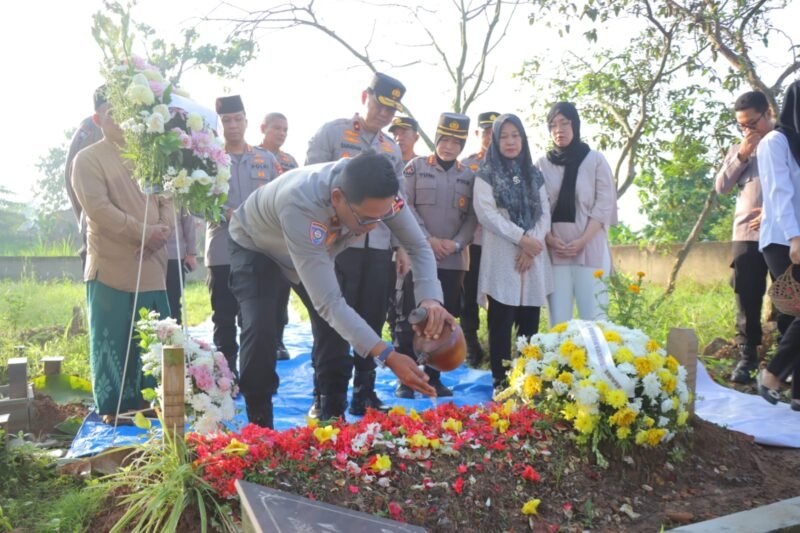 Kegiatan ini berlangsung khidmat di lokasi pemakaman almarhum, dan dipimpin langsung oleh Dir Bintibmas Baharkam Polri, Brigjen Pol M. Rudy Syarifudin, S.I.K., S.H., yang didampingi oleh Wakapolda Lampung, Brigjen Pol Dr. Ahmad Ramadhan, S.H., M.Si., M.H.