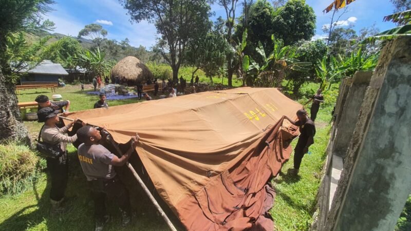 Papua – Personel Kompi 4 Batalyon D Pelopor Satuan Brimob Polda Papua kembali menunjukkan kepedulian dan respon cepatnya kepada masyarakat. Pada hari ini Rabu, 10 Desember 2025 personel diterjunkan ke Distrik Asotipo, Kabupaten Jayawijaya, untuk melaksanakan kegiatan bantuan berupa pemasangan tenda darurat bagi warga Kampung Asotipo yang terdampak bencana longsor.