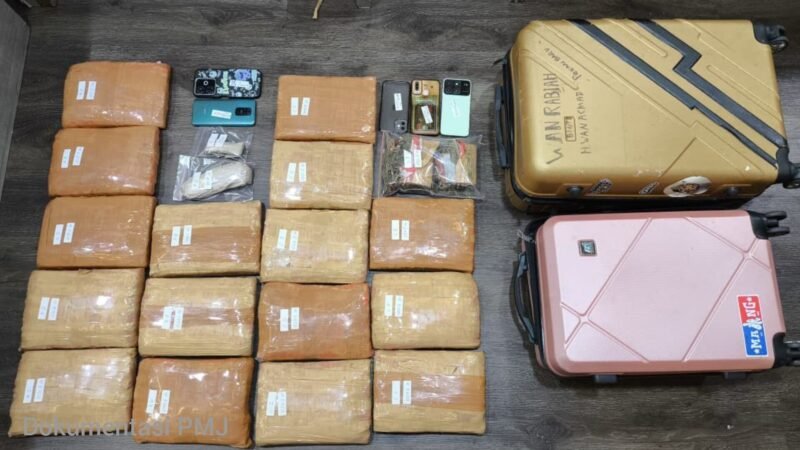 “Secara keseluruhan, barang bukti yang diamankan berupa ganja dengan total berat brutto 17 kilogram, empat unit telepon genggam, satu unit sepeda motor, serta dua buah koper,” ujarnya.