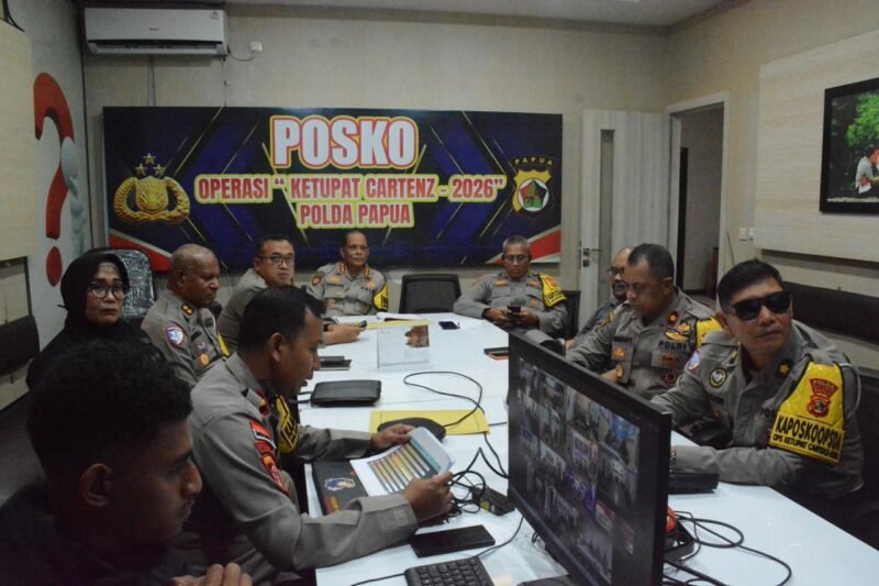 Papua – Polda Papua melaksanakan kegiatan Analisa dan Evaluasi (Anev) harian pelaksanaan Operasi Ketupat Cartenz 2026 yang digelar secara daring dan luring di Aula Command Center Mako Polda Lama Papua, Sabtu (14/3/2026). Kegiatan ini dilaksanakan sebagai upaya untuk menganalisa serta mengevaluasi pelaksanaan tugas operasi di jajaran Polda Papua agar berjalan efektif, terarah, dan sesuai dengan kebijakan yang telah ditetapkan.