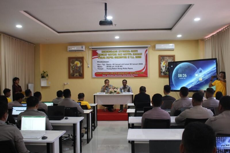 Papua – Kepolisian Daerah Papua melaksanakan Rekonsiliasi Internal Sistem Aplikasi Keuangan Tingkat Instansi (SAKTI) tingkat Satker dan Satwil jajaran Polda Papua Semester II Tahun Anggaran 2026. Kegiatan tersebut berlangsung di Ruang Rekon Rolog Polda Papua, Koya Koso, Selasa (27/01/2026).