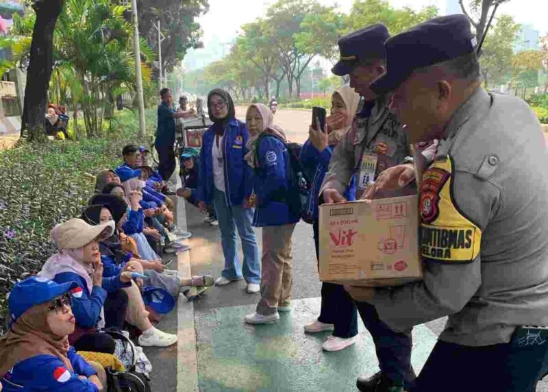 Jakarta – Dalam rangka mengawal aksi unjuk rasa buruh yang berlangsung hari ini di depan gedung DPR/MPR RI, aparat Kepolisian menunjukkan pendekatan humanis dengan menyiapkan 500 duz air mineral gelas serta permen untuk dibagikan kepada para peserta aksi. Kamis (1/5/2025).