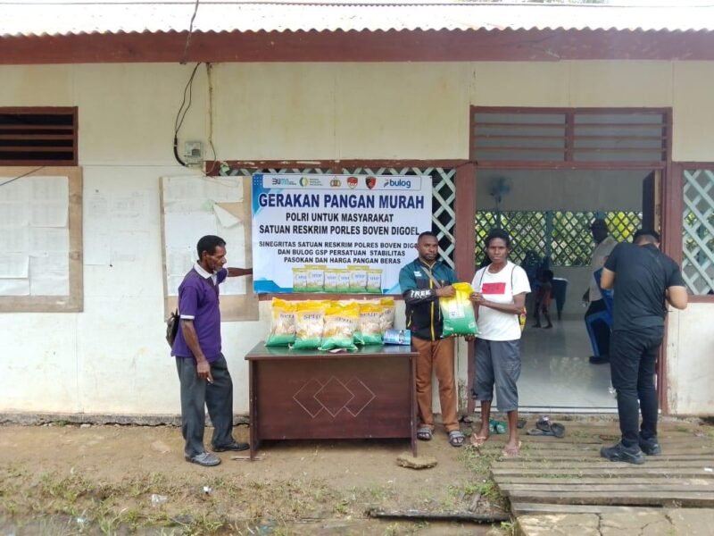 Papua – Polres Boven Digoel kembali melaksanakan Program Gerakan Pangan Murah di Kampung Persatuan, Distrik Mandobo, pada Jumat (05/12/2025).