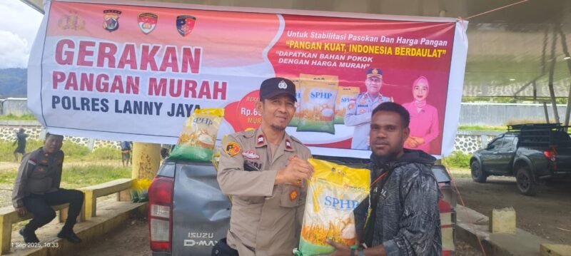 Papua – Polres Lanny Jaya melaksanakan Operasi Gerakan Pangan Murah tahap ke-6 di Terminal Pasar Tiom, Kabupaten Lanny Jaya, Senin (1/9/2025). Kegiatan ini digelar untuk membantu masyarakat memperoleh kebutuhan pokok dengan harga terjangkau.
