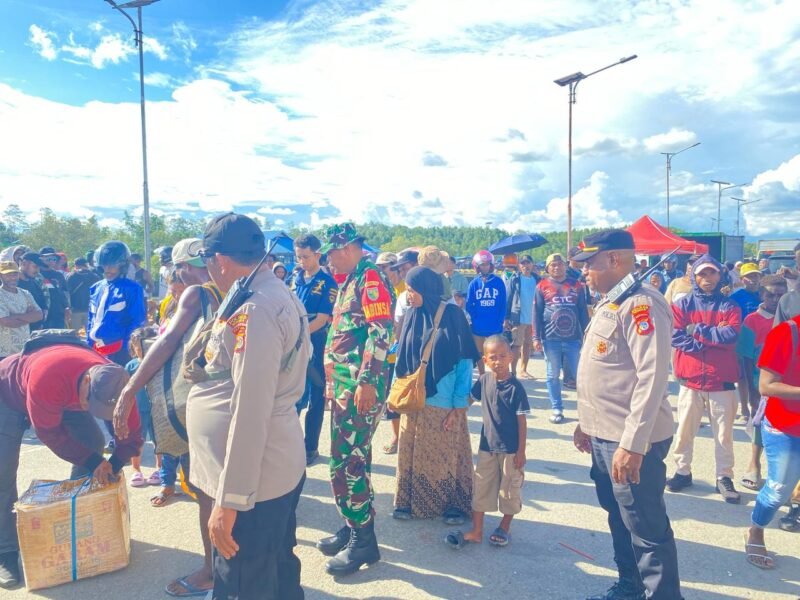 Polres Tolikara Kawal Penyaluran Sembako untuk Pengungsi Kebakaran Giling Batu–Kogome Karubaga