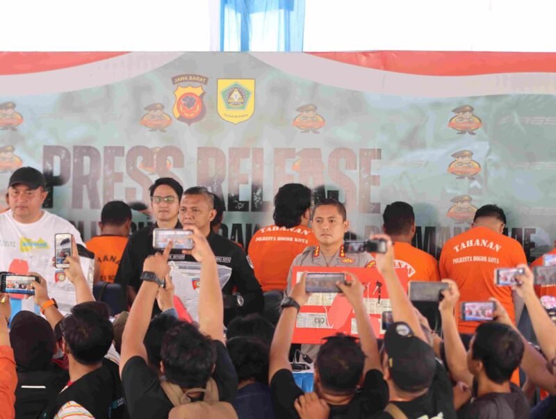 Jakarta – Polres Bogor bersama Polresta Bogor Kota menggelar konferensi pers kasus perampasan motor oleh debt collector (mata elang). Hal tersebut menjadi bukti serius penindakan premanisme di wilayah Bogor Raya.