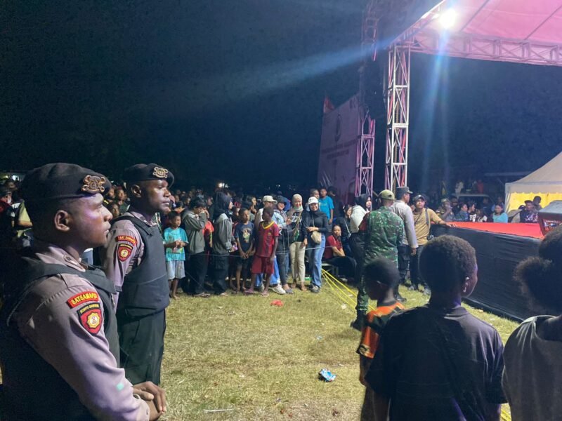 Papua – Dalam rangka memperingati Hari Ulang Tahun ke-80 Kemerdekaan Republik Indonesia, Polres Sarmi menurunkan personelnya untuk melaksanakan pengamanan kegiatan Pesta Rakyat yang berlangsung di Lapangan Merdeka Sarmi, Minggu malam (17/08/2025).